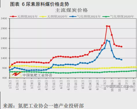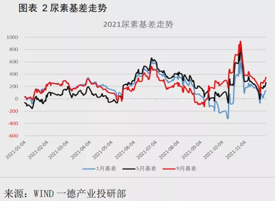 四季度价格突破历史后迅速回落:10月份中上旬煤炭期现价格进入疯狂上涨阶段,同时印度新一次招标结果在十一期间公布,价格大幅高于内贸,尿素市场价格年内第二次突破历史上涨至3100+元/吨。物极必反,器满则倾,国家正式出手管控煤炭价格,导致整体煤化工估值崩塌,尿素现货较高点最多回落约800元/吨,截至目前尿素市场供需双弱,低位震荡运行。