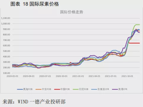 2021年受全球粮食价格上涨、各国粮食种植面积增长、种粮投入提高、成本推动等因素影响,全球尿素市场价格一路上扬创多年新高。全年产能投放与淘汰并存,产量不及预期;内需季节性明显,先强后弱,出口推波助澜,显性库存前低后高,隐性库存逐渐下滑。