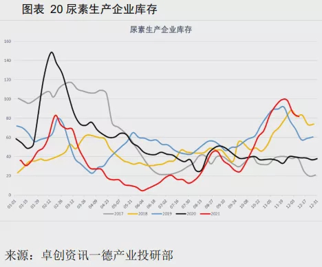 除上述与房地产行业及环保相关下游外,尿素工业下游还涉及氰尿酸、发泡剂、化妆品、饲料加工等行业,整体用量基数较小,有一定增量但对整体需求格局影响较低。综上所述,2021年尿素工业需求受后疫情经济复苏进程影响,全年表现前高后低,预计尿素消耗量平稳略增,2022年或保持平稳。