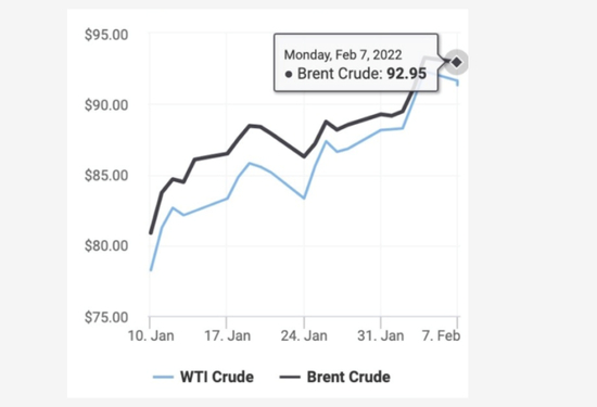 Currie给出了三个原因。首先是全球石油库存比五年移动平均线低约 5%。上个月,高盛将布伦特原油价格预测从之前的80美元上调至90美元/桶。在撰写本文时,布伦特和 WTI 原油基准均已超过90美元。