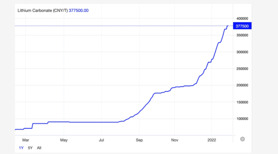 中国的锂价格已经起飞,电动汽车销量的飙升支撑了过去一年六倍多的涨幅。