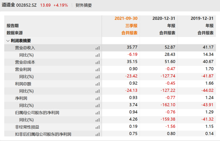 从业绩来看,道道全预计2021年度归属于上市公司股东的净亏损1.55亿元~1.9亿元;扣除非经常性损益后的净亏损1.07亿元~1.42亿元,上年同期为盈利7956.34万元。就在2021年前三季度, 道道全尚能实现净利润9404万元。
