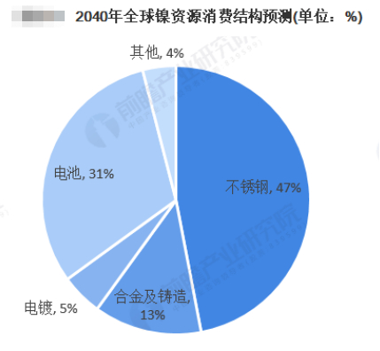 新能源汽车兴起,有关研究机构分析,预计到2040年全球镍将有31%应用在动力锂电池上。虽然比例较大,但在未来10年间,镍的需求还是要看不锈钢。