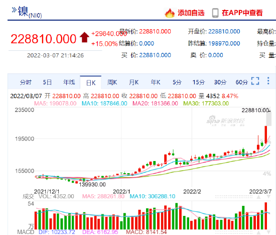 伦镍日内暴涨超60%,沪镍夜盘一字涨停开盘