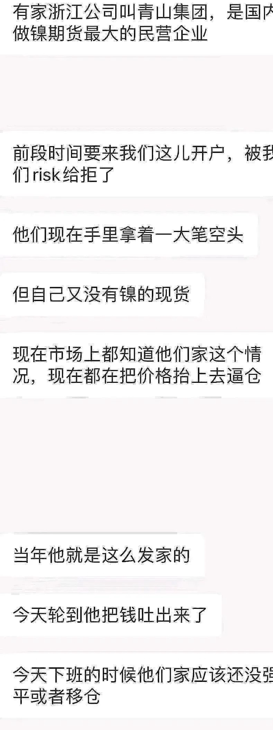 而这一次,青山集团被多逼空了。据传是多头方——全球大宗商品巨头、瑞士嘉能可,逼仓青山集团20w吨的空头仓位。