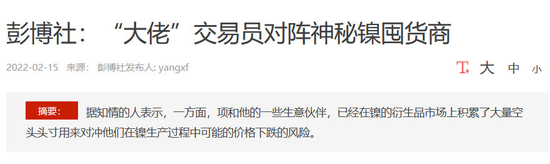 报道称,最重要的问题是,青山是否会继续与多头(嘉能可)一争高下,还是平掉空头头寸。而面临的一个难题是:由于青山生产的镍产品不符合与伦敦金属交易所(LME)期货合约的交割条件,因此他的期货空头与他生产的产品不是一个完美的对冲。这意味着,如果他被迫增加保证金或者进行移仓,这些空头会耗费他的大量的现金流。