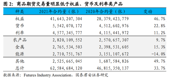虹吸效应方面:大宗商品的规模及交易机制使得资金虹吸效应相对有限。大宗商品实行保证金交易机制,从保证金的设计原理上交易所和期货公司都要考虑市场的波动风险,从而尽量保证客户可以进行杠杆交易的同时而不至于保证金“穿仓”(即保证金亏完以后还欠期货公司的钱)。一旦大幅度“穿仓”可能给各方带来法律、财务各方面纠纷。这也是LEM取消了3月8日的镍交易的重要因素之一。因此,大宗商品的期货交易理论上是以保证金规模为限产生亏损的。而在保证金规模而言,根据中国期货业协会发布的数据,我国2021年的期货保证金规模刚突破1万亿,其中金融期货的保证金约2000亿,因此商品期货保证金规模约8000亿。以交易量推断,中国期货交易占全球比例约13%,因此全球市场的保证金规模约6.15万亿人民币。这与全球超100万亿美元的股票市场、超过20万亿的美股国债市场等都不可同日而语。因此,大宗商品的暴涨所导致的流动性风险主要是空头的爆仓风险,是期货市场内的流动性风险。