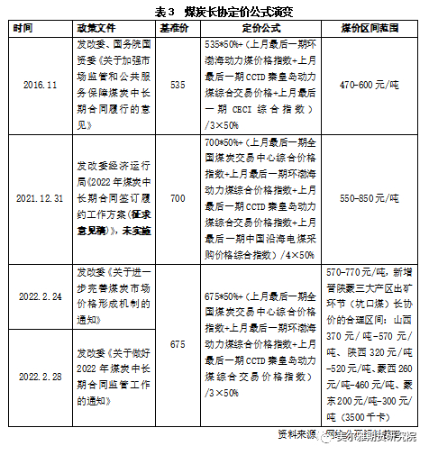 煤炭长协定价公式的演变如表3所示。