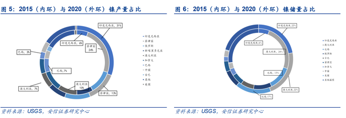 印尼拥有全球最大的镍矿储量和产量,且预计未来储量产量持续增长也将来自于印尼。对比2015年-2020年美国地质调查局公布数据,五年内全球储量增量约为1700万吨,印尼增产1650万吨。