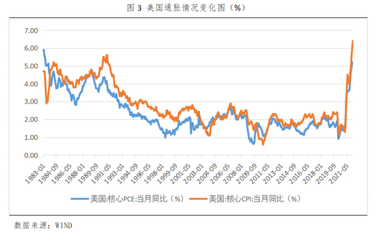 事实上,距离上次美联储加息已经过去3年,也是疫情席卷全球的3年。其间,为推动因疫情严重衰退的经济,美国双管齐下,除了政府财政补贴刺激消费外,美联储更是开启了历史性的降息周期。释放天量流动性的效果是立竿见影,美国在疫情后的经济复苏是七国集团中最强劲的。然而,通胀不可避免随之而来,甚至创造历史。美国劳工局及美国经济分析局的数据显示,截至2021年12月,美国核心CPI同比高达5.5%,为1982年1月以来(40年来)最高值,及至2022年2月,录得6.4%,续创新高。同时,另一通胀指标核心PCE同比在2022年1月,攀升至5.21%,为1983年5月以来最高,近乎为恶性通胀。另外,受益于极度宽松的货币环境,疫后美国宏观杠杆率、资本市场估值高位大幅抬升,房地产价格指数亦持续攀升,经济明显过热。