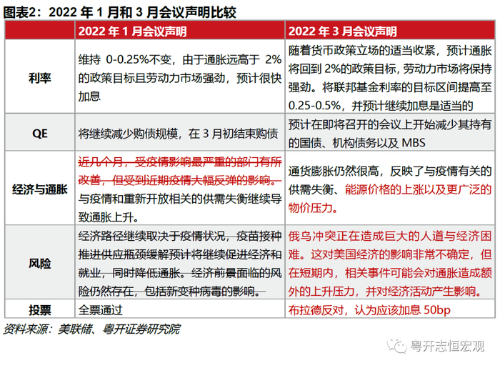 二、会议声明:加息措辞更激进,缩表最快将在5月