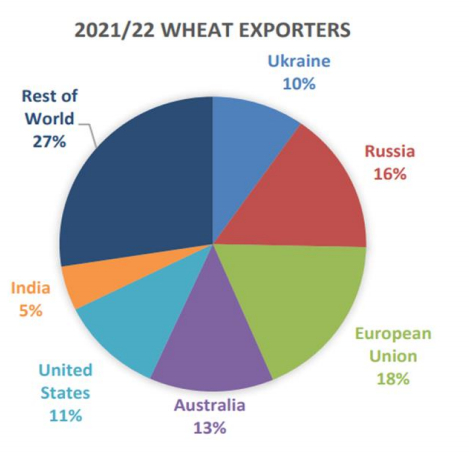 2021/2022全球小麦出口国占比