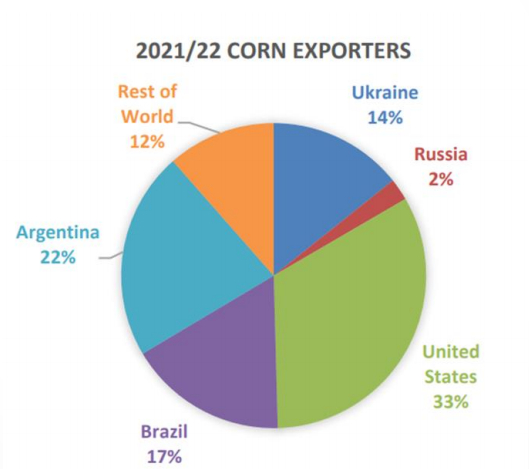 2021/22年度全球玉米出口国占比