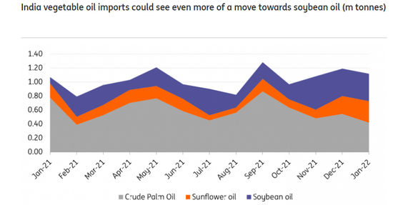 荷兰国际集团称,最近已经从全球最大的植物油进口国印度那里看到了这种趋势,而且未来这一趋势可能会加强。