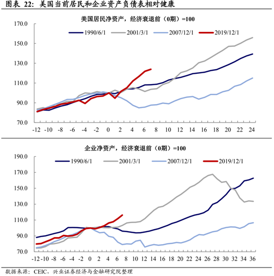 本轮美国企业居民的金融资产负债表都较为健康,短期内衰退概率仍低。与2000年和2008年相比,本轮最大的不同在于没有出现金融机构的资产负债表崩塌从而陷入衰退的情况。美国当前居民和企业资产负债表相对比较健康,与此前两轮衰退相比保护垫相对较厚。从联储根据10Y-3M利差测算的衰退概率来看,未来一年内陷入衰退的可能性较低,不到10%。因此,美国未来经济何去何从,可能将主要取决于联储后续的操作。