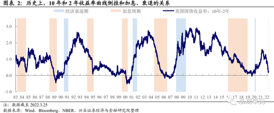 伴随着联储进一步放鹰,10年期国债收益率上破2.5%,10年和2年期限利差继续收窄,市场对美国衰退的担忧有所上升。本轮美债倒挂距离衰退有多远?如何看待未来美债走势?我们的看法。