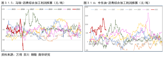 (1)如果原油价格继续上涨,沥青的估值将持续受到压制。在原油价格上涨过程中,炼厂综合加工利润并不会明显走弱,反而会受益于采购——生产的时滞,在这种情况下沥青的估值会持续受到压制;