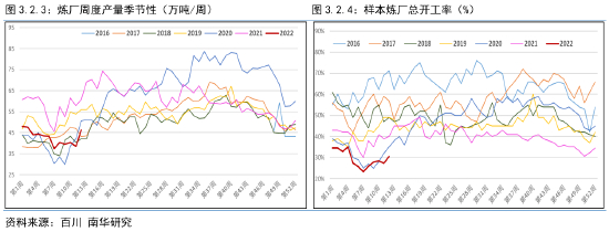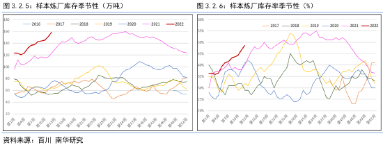 但不可否认的是,当前炼厂的产量水平依然低于往年同期,我们认为这主要也是由于下游需求端并不如年初时预计得那样乐观,炼厂库存水平一直居高不下导致的: