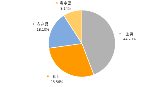 南华商品指数(NHCI)由20种商品期货组成,包括能化类:原油、天然橡胶、焦炭等,权重占比38.66%;工业品贵金属类:螺纹钢、铜、黄金等,权重占比43.69%;农产品类:苹果、豆粕、白糖等,权重占比17.65%。