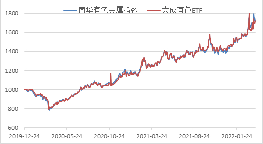 大成有色金属期货ETF于2019年10月24日成立,2019年12月24日上市。首发募集资金3.11亿元。基金成立后,采取了分品种、合约逐步建仓的策略,先期配置权重相对较重的沪铜和价格弹性较小的沪铝合约。基金对比业绩基准上期有色金属期货价格指数IMCI。对比有色ETF和南华有色金属指数,截止03月31日,有色ETF净值为1.74,南华有色金属指数为1.72。从趋势上看,两者走势基本保持一致,有色ETF一直维持在南华有色金属指数上方,基金报告显示,基金成立后,恰逢有色金属期货价格指数IMCI处于下跌调整期,基于市场状况,基金采取分品种、合约逐步建仓的策略,一定程度上奠定了对基金业绩基准偏离的基础。