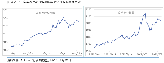 从板块上看,南华能化板块今年表现最强,尽管事件冲击最恐慌时期已经过去,但是冲突仍在持续,解决的办法仍未找到,大幅下调的可能性不大;南华金属板块跟随宏观经济波动,受国内宏观政策影响较大,在疫情多点爆发之下,关注政策变化情况。农产品板块继续分化,关注结构化行情。