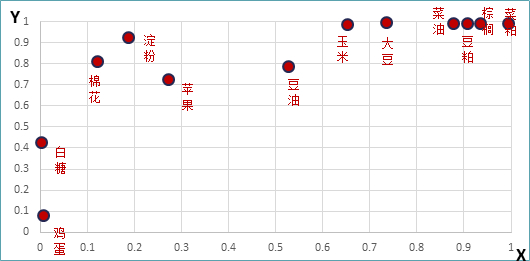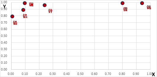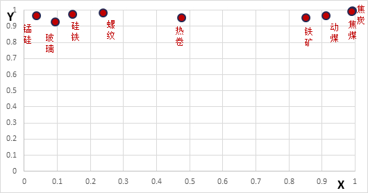 南华指数风险评估模型通过纵向对比和横向对比,建立单品种风险的二维坐标结构(X、Y),其中,X、Y值都在0和1之间,通过观察X和Y值,就能轻松简便的判别不同情况下某个品种当前状态下进行操作的风险程度。