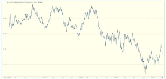 上图是铜与原油的价格趋势图,我们看到虽然原油是化工领域,而铜代表的是有色金属产品,但是两者的价格相关性仍然是比较强。