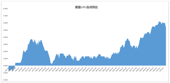 上图是美国1955年-1970年间美国的CPI数据,可以看出在1970年初美国的通胀达到近十几年的高位。