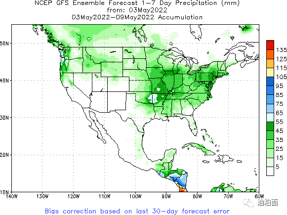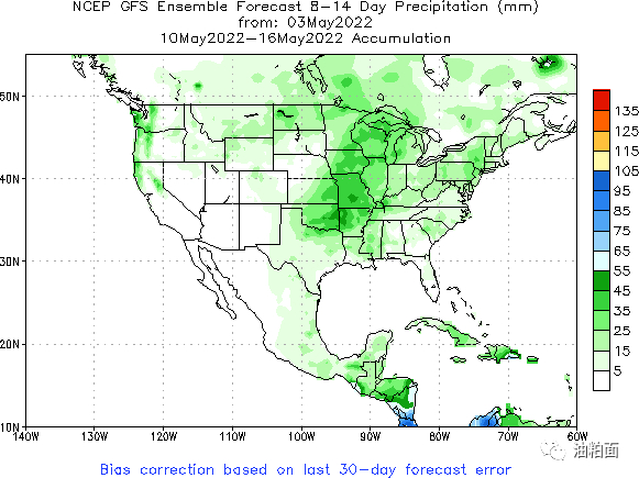 截至周日,玉米种植完成率达到14%,高于一周前的7%。分析师预计会看到更多进展,并给出了16%的平均市场猜测。更令人担忧的是,今年的起步速度远低于去年的41%和前五年的33%。据美国农业部(USDA)统计,前18个生产州中有两个州尚未看到任何可衡量的进展——明尼苏达州和北达科他州。
