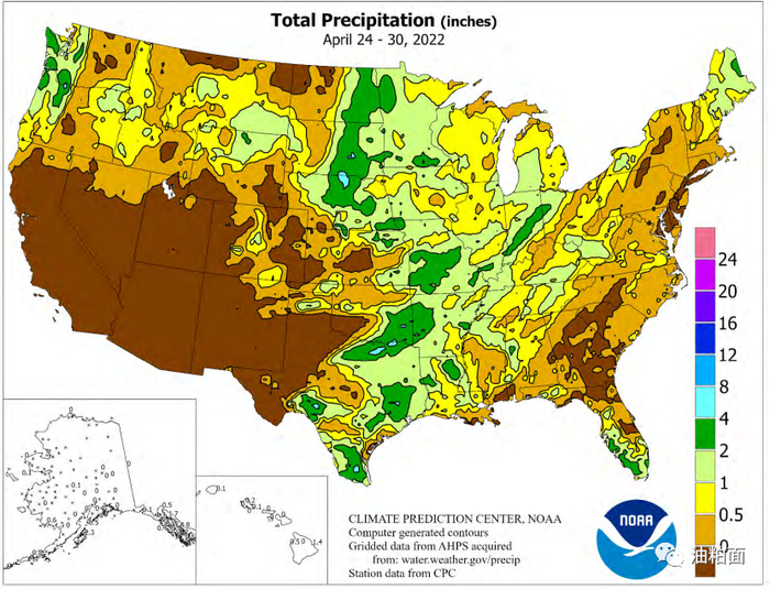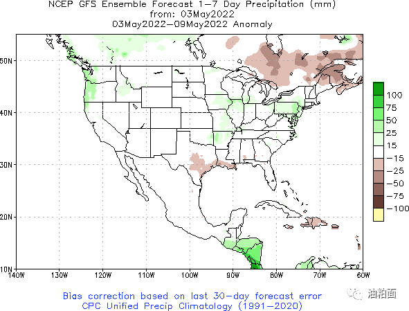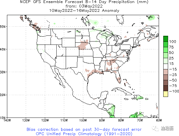 大豆种植量从一周前的3%上升到了8%,符合分析师的预期。然而,与去年22%的速度和前五年13%的平均速度相比,进展仍然缓慢。与玉米种植一样,明尼苏达州和北达科他州尚未正式列入美国农业部的种植进度更新。路易斯安那州(59%)和密西西比州(48%)是迄今为止最快的。