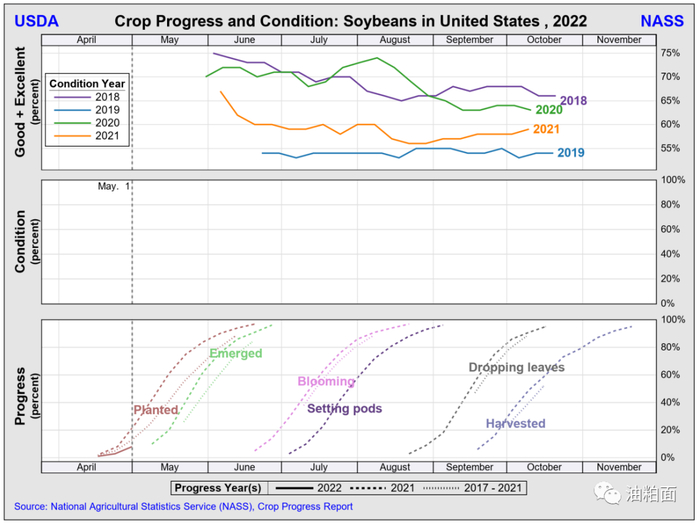 23%的作物正在收割,高于一周前的11%。这落后于2021年26%的速度和前五年29%的平均速度。