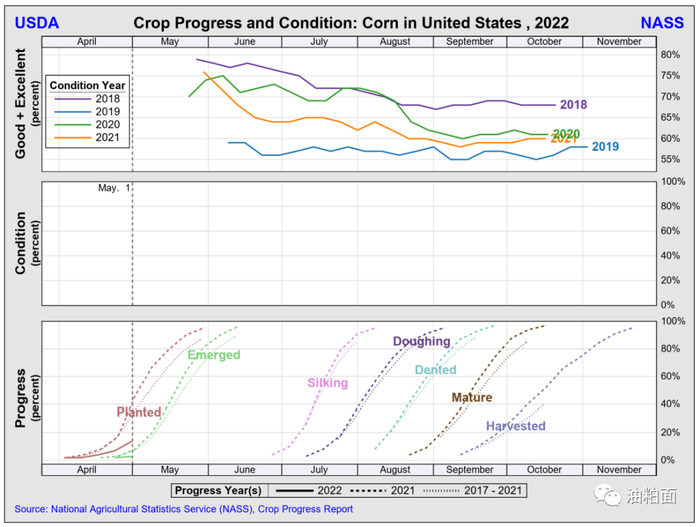 美国农业部最新的作物进展报告进一步证明,2022年的作物种植季节面临各种挑战。最近几周困扰中西部的降雨天气明显减缓了玉米和大豆的种植。这两种作物在过去一周都取得了一些进展,但仍远低于历史平均水平。在今天的报告中,平原上的雨水落在干燥的土壤上,但尚未能提高冬小麦作物的状况。