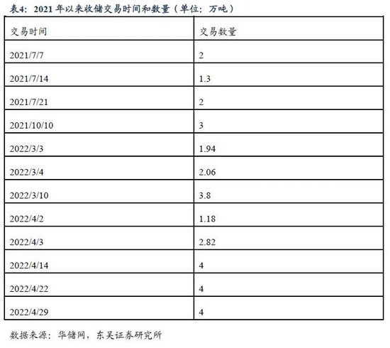 自2021年6月发布这一预案以来,2021年有过两轮收储,第一轮交易时间分别为7月7日、14日和21日,共涉及猪肉5.3万吨,第二轮交易时间为10月10日,收储3万吨猪肉。2022年有八次收储,共收储23.8万吨猪肉。