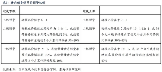 在“猪周期”、非洲猪瘟疫情和新冠肺炎疫情的三重影响下,《完善政府猪肉储备调节机制做好猪肉市场保供稳价工作预案》出炉,旨在加强政府猪肉储备调节工作,提升生猪和猪肉市场调控能力。根据生产成本数据测算,生猪生产盈亏平衡点的猪粮比价约为7:1,预警区间的设定参考了该比值,当猪肉价格过度下跌时,避免养殖户恐慌性集中出栏,当猪肉价格过度上涨时,避免养殖户非理性过度补栏。