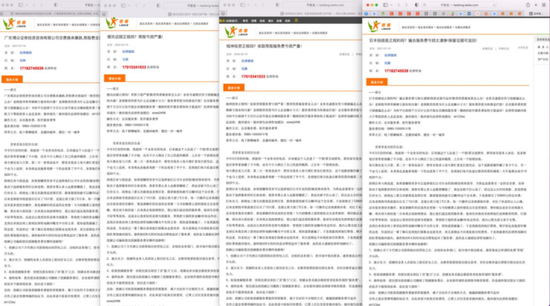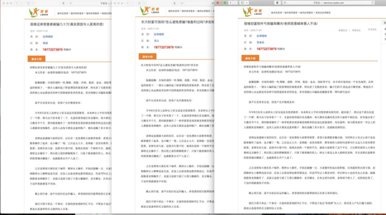 以老客网为例,多篇“维权”文章均留下了同样的手机号。