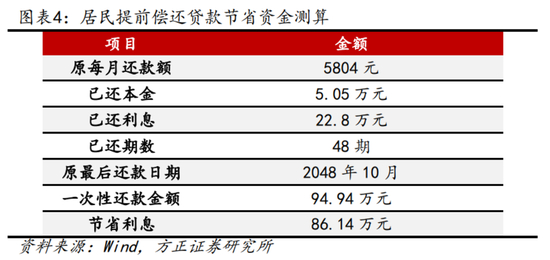 方正证券认为,只考虑理财收益率与房贷利率价差扩大就提前还款并不是一笔划算的买卖。还需要从还款时间年限、还款方式、已还款期数等多要素共同评估。
