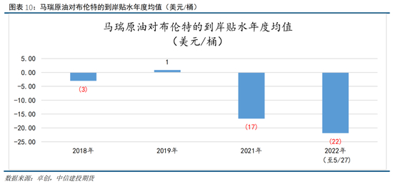 根据业内人士告知,委内瑞拉被制裁前,国内进口马瑞(Merey)原油的业务主要由中石油燃油公司承接,就到岸升贴水(升贴水+代理费)而言,2018年和2019年Merey-Brent的年度贴水平均价格分别-3美元/桶和+1美元/桶。同时当时对应的Oman-Brent的年度贴水平均价格为-0.4美元/桶和+0.3美元/桶。