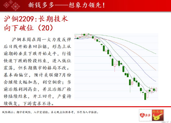 基本面概述:基本面偏空,预计美联储7月份会继续大幅加息,利空铜价;当前冶炼利润高企,并且冶炼厂检修陆续结束,开工回升,产量持续恢复,下游需求不济。