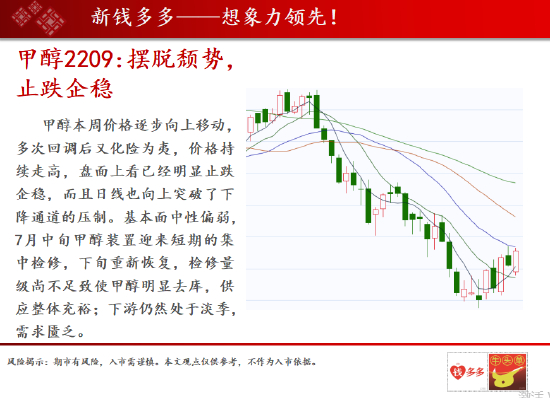 操作建议:甲醇本周价格逐步向上移动,多次回调后又化险为夷,价格持续走高,盘面上看已经明显止跌企稳,而且日线也向上突破了下降通道的压制。