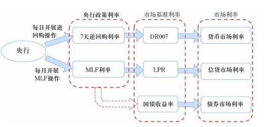 目前我国已基本形成了市场化的利率形成和传导机制,以及较为完整的市场化利率体系,主要通过货币政策工具调节银行体系流动性,释放政策利率调控信号,在利率走廊的辅助下,引导市场基准利率以政策利率为中枢运行,并通过银行体系传导至贷款利率,形成市场化的利率形成和传导机制,调节资金供求和资源配置,实现货币政策目标。