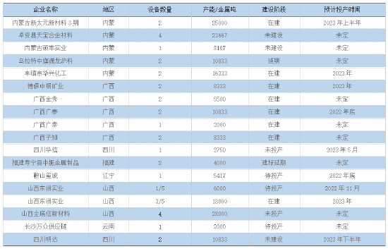 表格 2 国内铬铁待投产项目