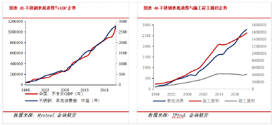 不锈钢下游消费分散在许多细分行业,由于较多行业缺少统计数据,加大从细分行业跟踪分析需求的难度。但不锈钢消费量与宏观经济发展相关性较强,可以聚焦于房地产、基建、机械等与不锈钢需求相关性高的重点行业,从整体上把握需求动向。