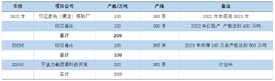 表格 3 印尼不锈钢新增产能计划