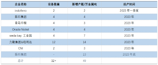 表格 1 印尼镍铁2023年待投产项目