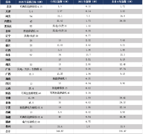 数据来源:网络公开资料,金瑞期货(注:黑龙江、吉林、辽宁、海南、云南、陕西、福建未分开公布风电、光伏项目的指标,故上表合计未包含这7个省份的数据)