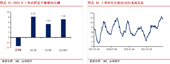 从过去几年的工业硅供需平衡表来看,从2021年开始,随着新增产能较多且不断投产和下游消费总体不景色,年度供需平衡均小幅过剩,预计2023年仍然小幅过剩7.19万吨左右。我们在考虑云南限产、西南枯水期产量波动等因素后,即使利润下降带来的开工率下降,实际的供需平衡也仍过剩。