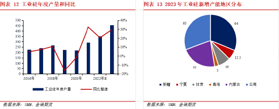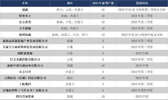 2023年具体的新增产能分布在新疆、云南、内蒙古、甘肃和青海等地区,除了云南是西南地区,其余都在西北和华北地区等不依赖水电的生产区。产能投放时间主要集中在第二和第三季度,第一季度预计由2022年的未兑现产能所贡献。