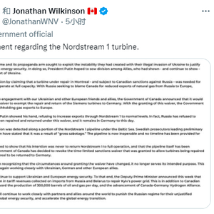 在德国经济部长罗伯特·哈贝克(Robert Habeck)公开呼吁之后,加拿大于7月9日宣布了豁免决定。这使得当时在蒙特利尔维修的涡轮机得以被送回欧洲,其他涡轮机则能够被送到加拿大,在未来两年内进行维修。