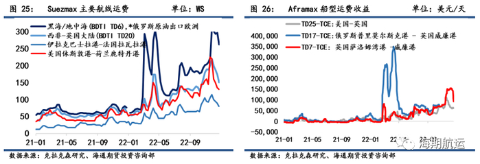短期来看,一方面,中国疫情放开后疫情感染大幅影响终端需求,市场预计1月中旬各地将迎来高峰,短期内需求承压或对VLCC产生消极影响,但疫情进入平稳期后需求恢复有望再次提振市场信心。另一方面,上周俄罗斯原油海运出口160万桶/天,较前周大幅减少约186万桶/天,主要因波罗的海港口季节检修和制裁背景下大部分船公司承运俄油持谨慎态度。12月23日俄罗斯宣布减产量可能达到每天50万至70万桶,并停止向支持对俄石油设置价格上限的国家进行销售,俄罗斯原油出口减量预期强烈,或对油运市场产生扰动。本周处于节假日淡季期,市场交易活动减弱,1月初/中旬装货对应多条船只供给,短期运费面临一定压力。
