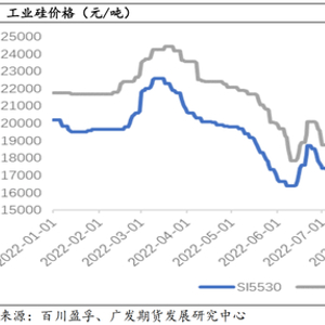 二季度,由于一季度工业硅价格较高,行业利润处于高位,企业保持较高开工率,供应保持充足。上海地区疫情爆发,对下游有机硅房地产、电子终端及铝合金汽车终端造成较大影响。在供应充足,需求疲软的情况下,库存下滑不及预期,工业硅价格一路下行,由之前的价格高点一路下滑,最低时通氧Si5530价格16400元/吨,Si4210价格17850元/吨。